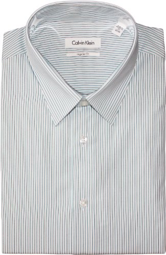 The Detailed Description of Calvin Klein White Label Striped Dress Shirt (16" Neck 34/35, Aqua)Features